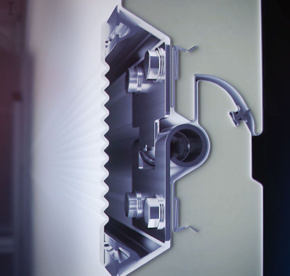 - le profilé en aluminium et 5 couches de tôle au niveau du point de fixation sont synonymes de solidité et de durabilité.