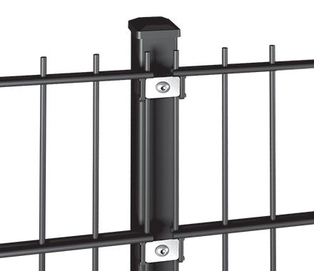 Les panneaux VEGA 2D et VEGA 2D Super peuvent être installés sur 4 types de poteaux à l’aide de 5 accessoires de montage différents disponibles dans l’offre WIŚNIOWSKI. La pose des panneaux peut s’effectuer sur un terrain plat ou en pente, directement au-dessus du sol ou à l’aide d’une planche en béton. Les poteaux peuvent être encastrés directement dans le sol ou sur les fondations en béton à l’aide des pieds de montage.