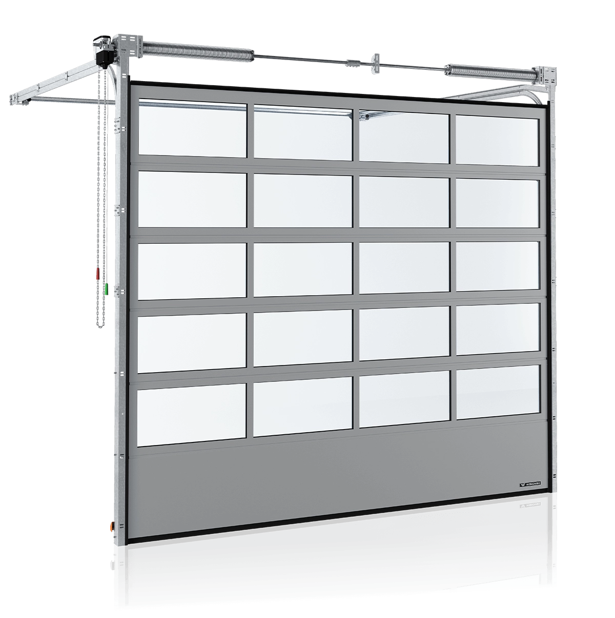 Les portes sont réalisés de panneaux en aluminium de 40 [mm] sans rupture de pont thermique, remplis de vitrages acryliques. Panneau supérieur en acier.